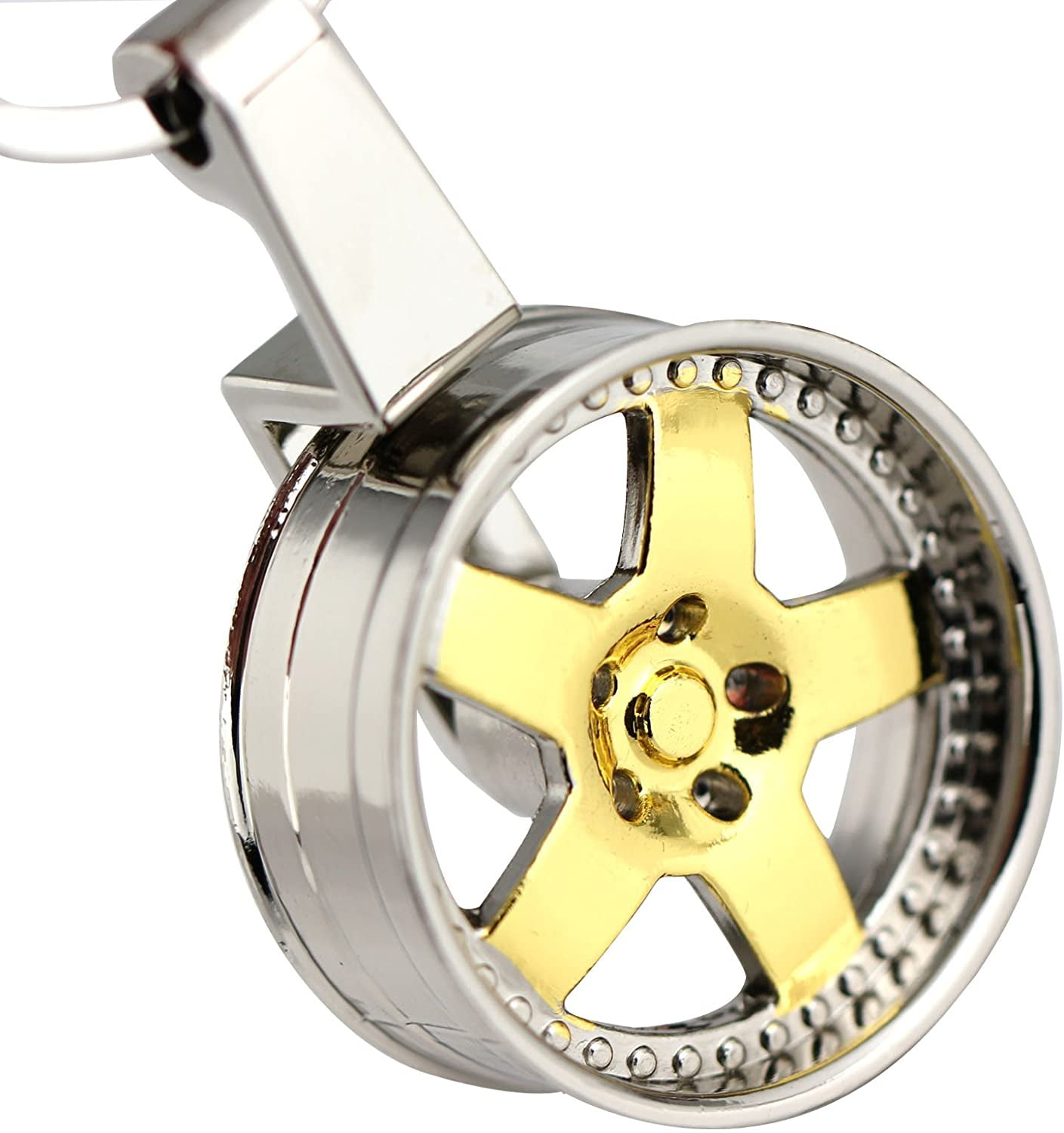Wheel Rim Keychain Creative Auto Part Model Spinning Metallic Accessories Five Star Key Chain Ring Keyring Keyfob Gold Walmart Com