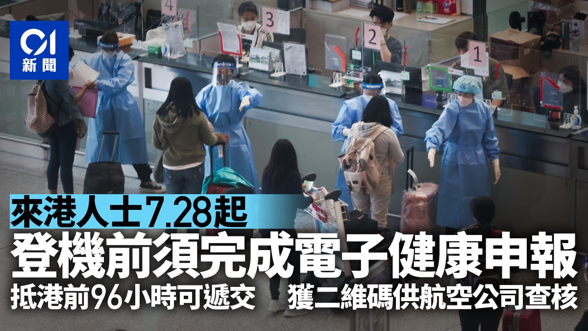 來港人士7 28起須登機前填電子健康申報抵港前96小時可遞交